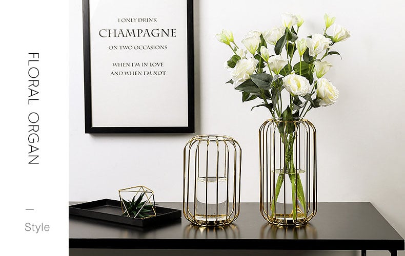 Bình cắm hoa khung kim loai vàng Bắc Âu
