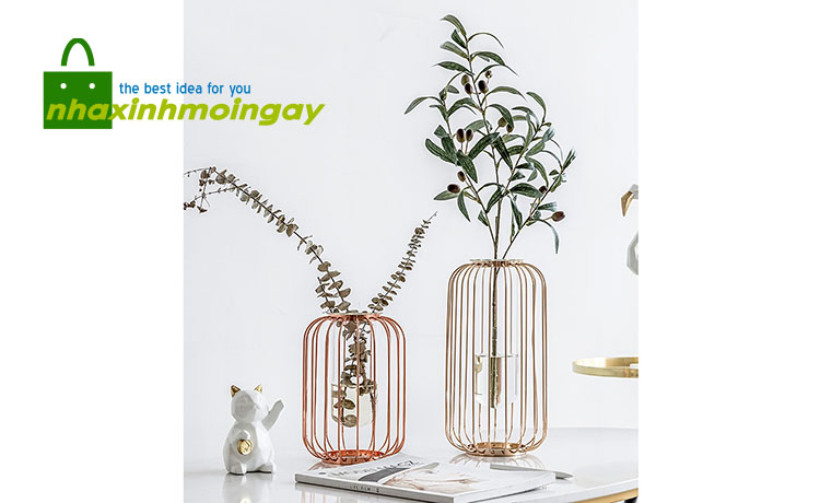 Chất liệu: khung thép mạ vàng, bình thủy tinh