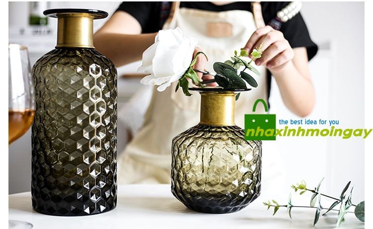 Bình thủy tinh cắm hoa với họa tiết tổ ong sang trọng theo phong cách Châu Âu. Dùng cắm hoa tươi hoặc hoa giả đều được.