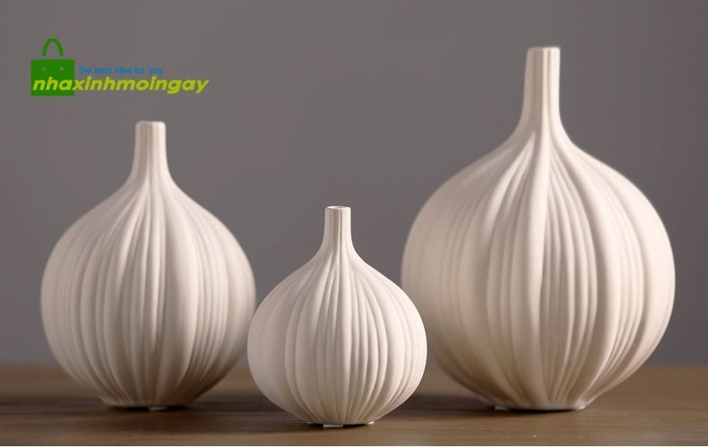 Bộ bình gốm củ tỏi ceramic dùng trang trí nhà cửa hoặc làm quà tặng.