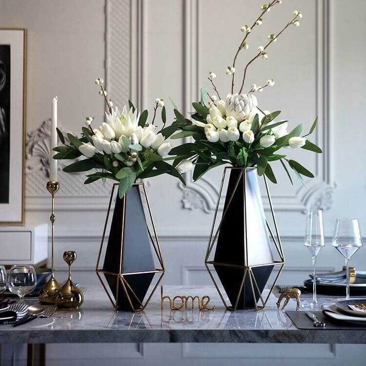 Bình hoa sắt nghệ thuật sang trọng theo phong cách hiện đại. Dùng trưng bày hoặc cắm hoa giả trang trí phòng khách, phòng ăn, phòng làm việc hoặc dùng làm quà tặng cho bạn bè. Bình hoa sắt nghệ thuật dùng decor, trang trí phòng khách, phòng làm việc, bàn ăn hoặc dùng làm quà tặng