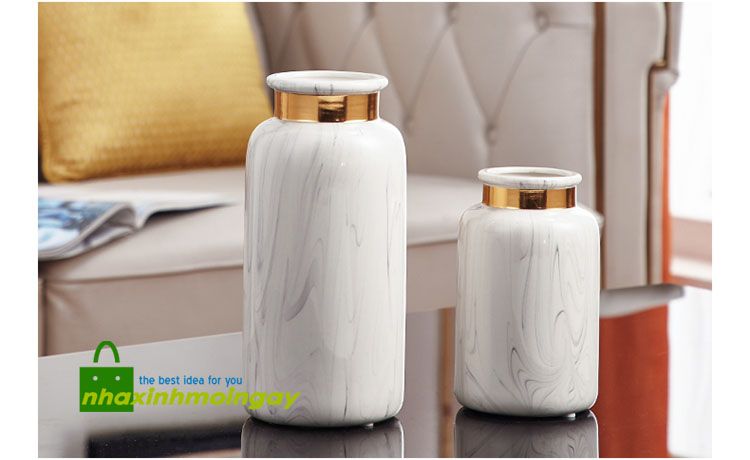 Bình sứ cắm hoa vân đá viền vàng