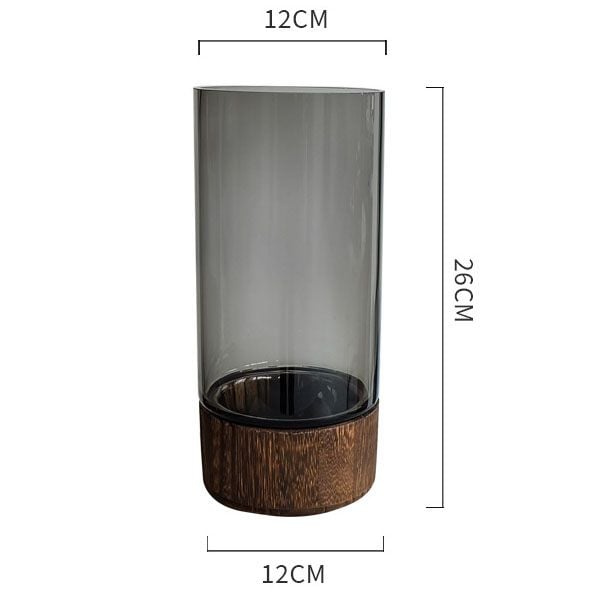 Bình thuỷ tinh cắm hoa đế gỗ hiện đại