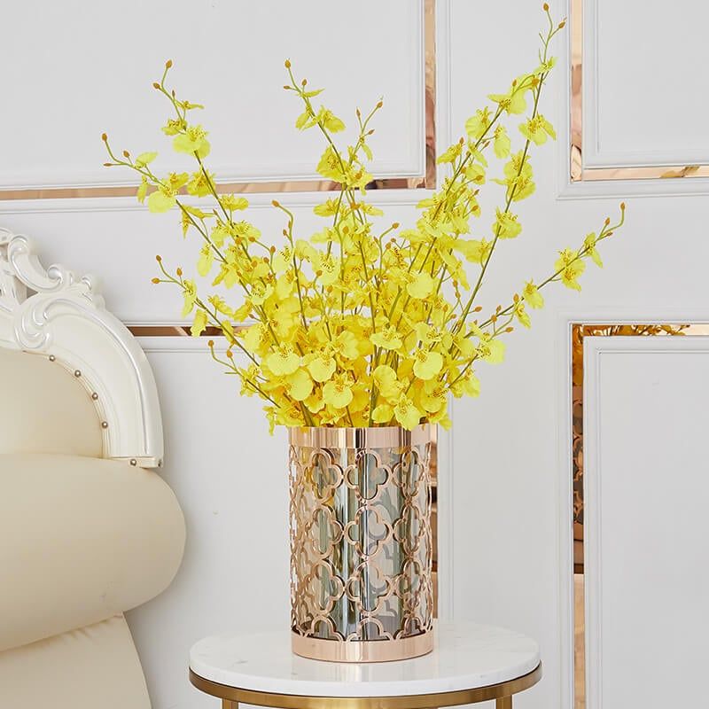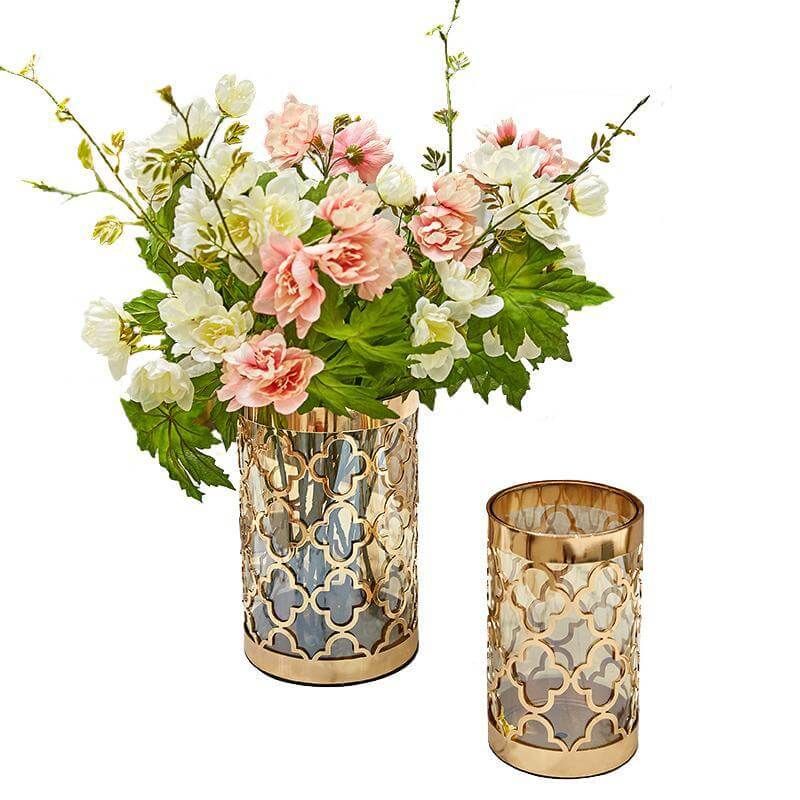 Bình cắm hoa với thiết kế tuy mới nhưng cũ theo phong cách Bắc Âu. Bình cắm hoa khung kim loại thiết kế sáng tạo với hình ảnh hoa văn thời trang sang trọng thích hợp trang trí hoặc cắm hoa để bàn ăn, trang trí phòng khách, cửa hàng,...Bình cắm hoa có thể dùng cắm hoa tươi, hoa khô hoặc hoa vải ( hoa giả) đều được. Dùng trang trí trong nhà hoặc làm quà tặng đều thích hợp. Khung kim loại mạ vàng ánh kim sang trọng theo đúng chuẩn Bắc Âu.