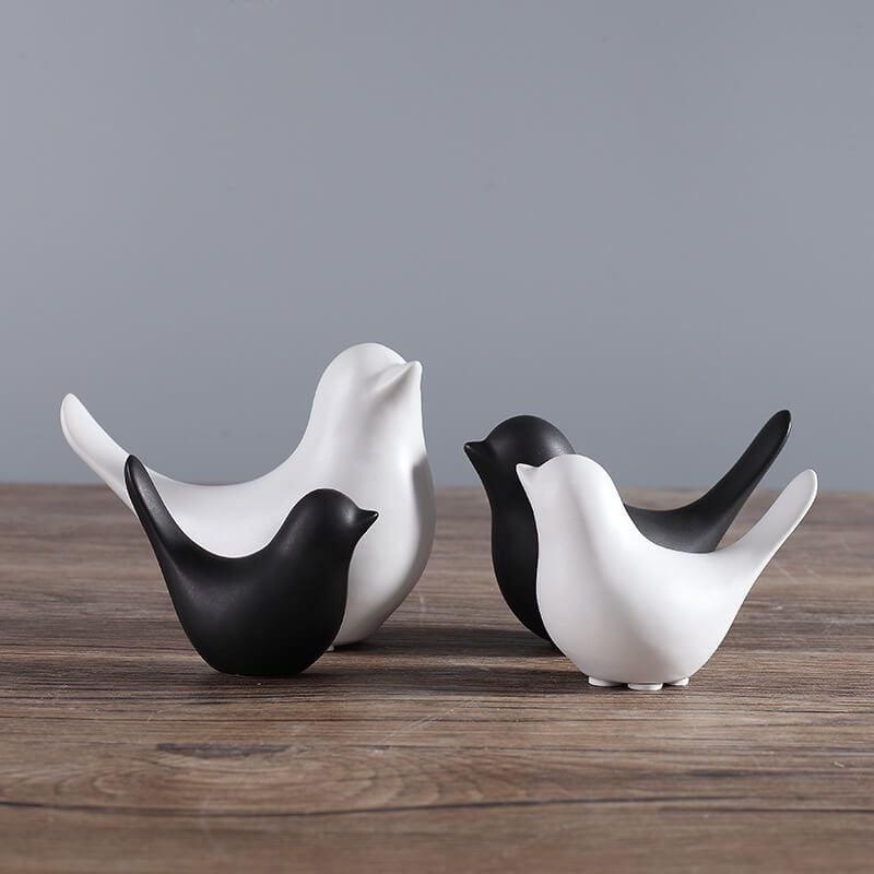 Bộ chim gốm đen trắng hiện đại