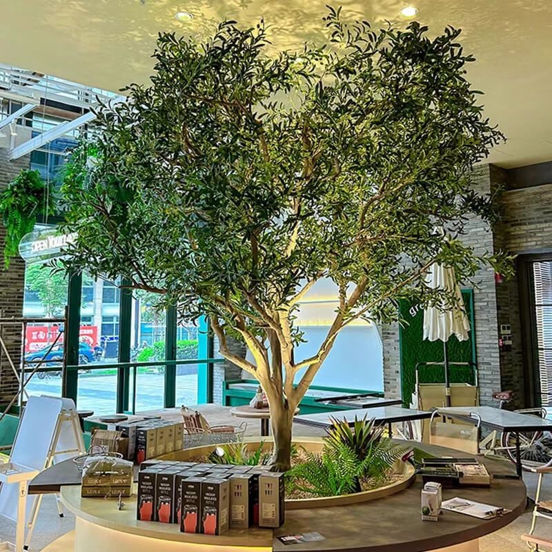Cây ô liu giả tán tròn là một trong những mẫu cây giả trang trí cao cấp, được thiết kế tỉ mỉ với dáng cây thân gỗ chắc khỏe, tán lá xòe rộng tự nhiên, mang lại cảm giác gần gũi và sang trọng. Với chiều cao linh hoạt từ 2 mét trở lên, sản phẩm phù hợp cho các không gian lớn như quán cà phê, nhà hàng, sảnh khách sạn, showroom, văn phòng hoặc biệt thự.