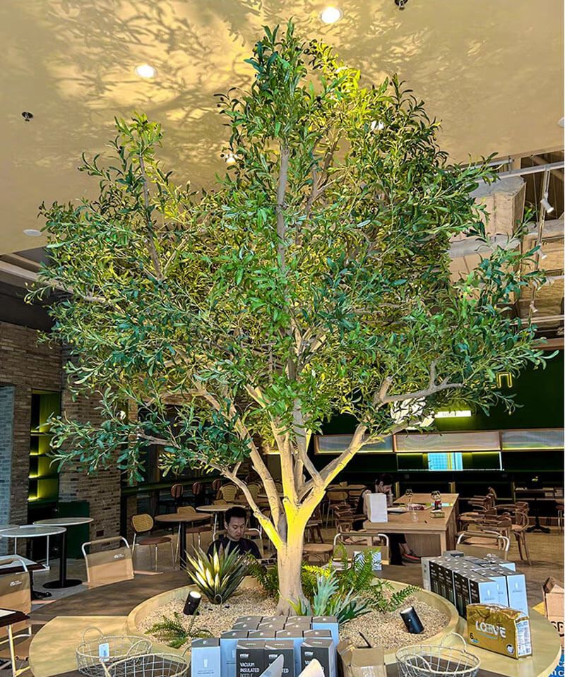 Không chỉ là điểm nhấn thẩm mỹ, cây ô liu giả còn giúp nâng tầm không gian sống, tạo cảm giác thư giãn và xanh mát mà không cần tốn công chăm sóc như cây thật. Toàn bộ phần thân cây được đúc theo khuôn mẫu từ gỗ thật, giữ nguyên đường nét mộc mạc và chân thật đến từng chi tiết.