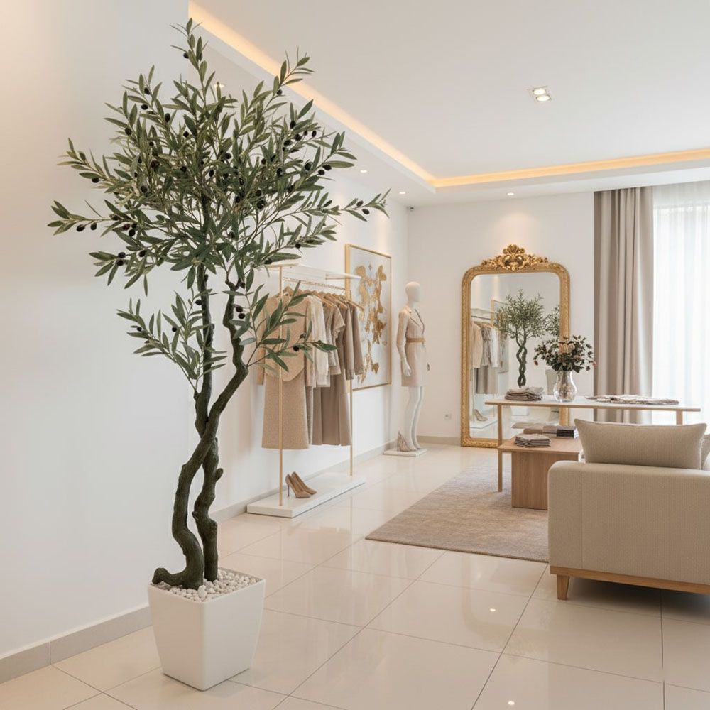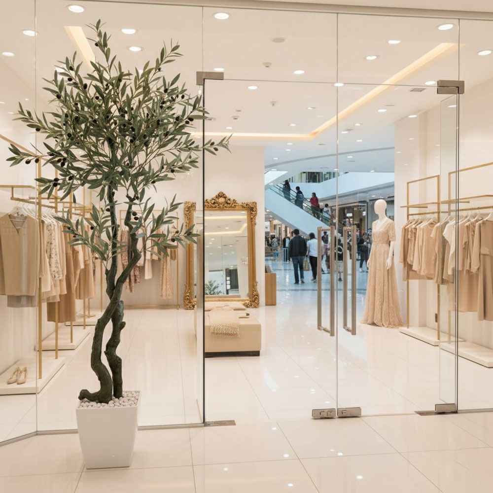 - Cửa hàng, showroom, spa: Như trong hình ảnh, cây là lựa chọn số một cho cây giả trang trí shop thời trang, tạo ra một không gian mua sắm sang trọng, thu hút và chuyên nghiệp.