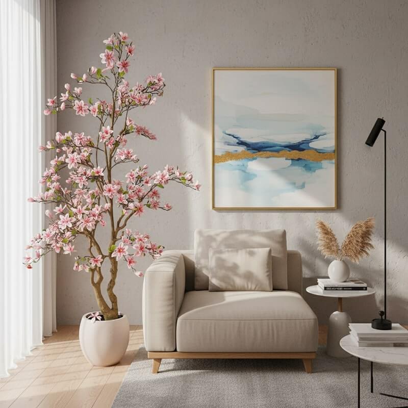 Khác với cây thật cần chăm sóc cầu kỳ, cây hoa ngọc lan giả giữ được vẻ đẹp rực rỡ quanh năm, mang đến sự tiện lợi và sang trọng. Với chiều cao 2.5m, dáng cây thanh thoát cùng hoa nở tự nhiên, đây là điểm nhấn hoàn hảo cho không gian nội thất cao cấp.