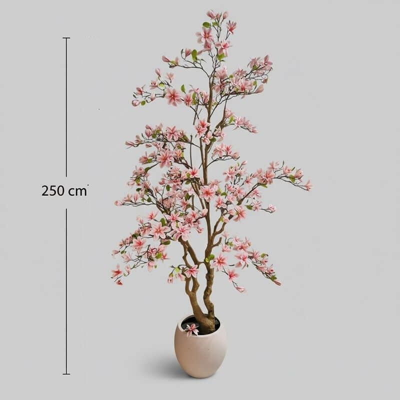Cây hoa ngọc lan giả trang trí cao 2.4m – 2.5m (bao gồm cả chậu) là lựa chọn hoàn hảo để mang đến sự thanh lịch, tươi mới và sang trọng cho ngôi nhà hay văn phòng. Với thiết kế tinh xảo, từng cánh hoa ngọc lan hồng phấn được chế tác tỉ mỉ, mềm mại như thật, tạo cảm giác tự nhiên và cuốn hút.