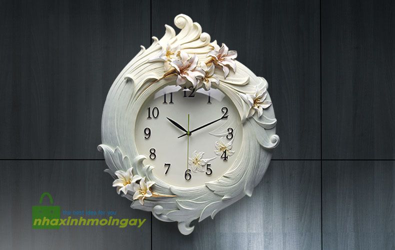 Đồng hồ treo tường phù điêu hoa Lily