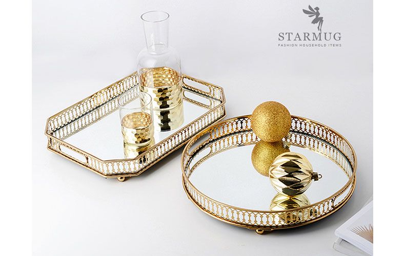 Khay đựng đồ kim loại mặt kính phong cách Châu Âu hiện đại sang trọng. Khay đựng đồ kim loại dùng đựng đồ trang trí trên bàn sofa, dùng đựng mỹ phẩm, dùng đựng bình trà. Khay đựng đồ decor có 2 kiểu dáng tròn và hình chữ nhật cho bạn chọn lựa phù hợp với không gian nội thất cùa mình.