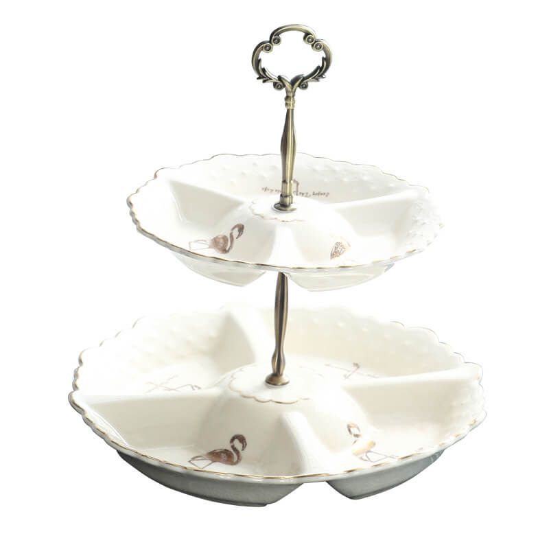 Khay sứ 2 tầng đựng bánh kẹo trang trí mang đến sự sang trọng và tinh tế cho không gian bàn tiệc. Với hoạ tiết hồng hạc và hình hươu tinh xảo, sản phẩm là điểm nhấn trang trí độc đáo cho bàn ăn hoặc bàn tiệc trở nên cao cấp và sang trọng hơn