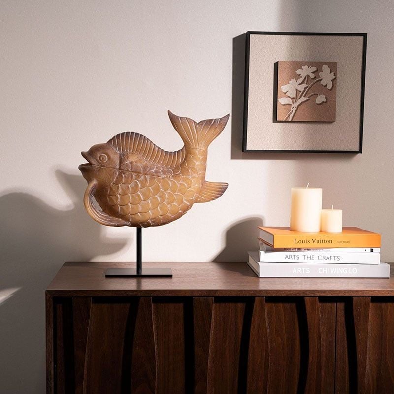 Không chỉ là một món đồ nội thất, bức tượng cá Niên Niên Hữu Dư trang trí, trong văn hóa Á Đông, hình ảnh chú cá vươn mình bơi lên tượng trưng cho sự sung túc, dư dả và tài lộc quanh năm. Đặt mẫu tượng decor này trong nhà như một lời cầu chúc cho sự nghiệp thăng tiến, kinh doanh thuận lợi và gia đạo bình an.