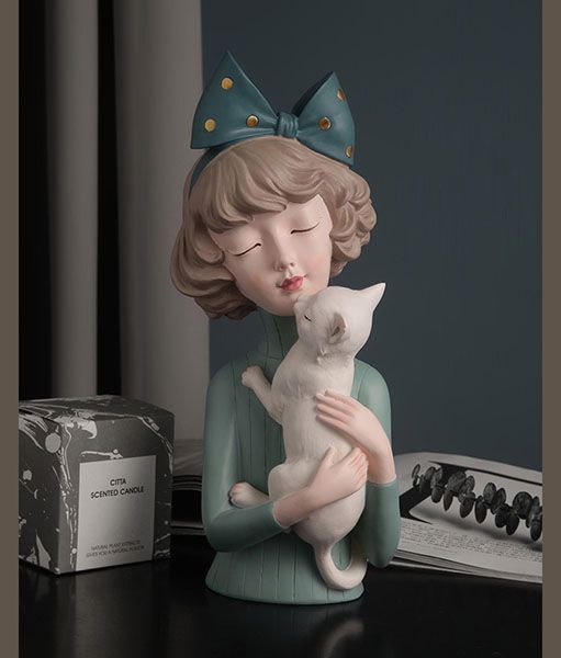 Tượng cô gái Bắc Âu ôm thú cưng, quyến rũ, thời trang, nghệ thuật phong cách dùng làm quà tặng cho bạn bè hoặc trang trí nhà cửa, trang trí bàn làm việc , trang trí văn phòng.Tượng vẽ tay nên màu sắc và đường nét tinh xảo, chất liệu cao cấp là món quà tặng ý nghĩa cho người thân, bạn bè và đồng nghiệp.