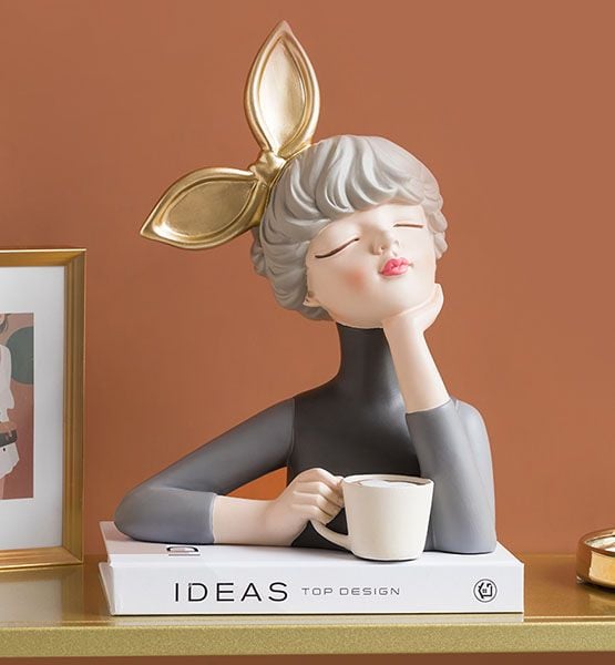 Tượng cô gái uống cafe nghệ thuật phong cách và thời trang dùng làm quà tặng cho bạn bè hoặc trang trí nhà cửa, trang trí bàn làm việc , trang trí văn phòng.