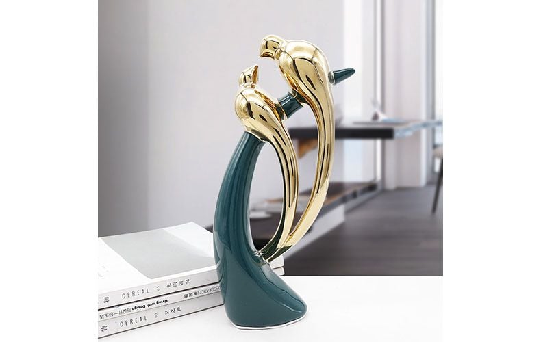 Tượng đôi chim gốm vàng trang trí kệ sách