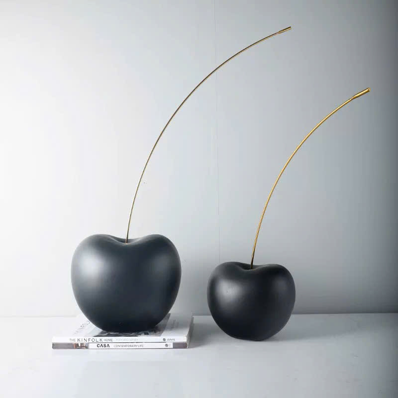 Tượng trái cherry nghệ thuật trang trí cao cấp với 2 màu đen và trắng, kích thước đa dạng, thiết kế hiện đại, sang trọng. Phù hợp cho trang trí phòng khách, bàn làm việc, quà tặng tân gia. Chất liệu bền đẹp, điểm nhấn tinh tế cho không gian sống.